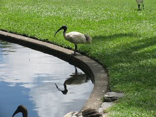 This was on the day I enjoyed a long walk around the city by myself. Yes, it was safe. The Ibis are a large bird which I understand are an annoying critter around the city always begging for scraps and making large messes. But, they are pretty and I liked them. They are nesting in the palms and bamboo. Making a lot of noise and trying to attract a mate. The other birds were doing the same but are not in such large numbers. Nor so loud. The gardens are beautiful and unique but nothing like the Denver Botanic Gardens. It was more like a very gorgeous park for strolling and biking through. It ran along the river and a bike and walking path ran along the river and a boardwalk as well. The gardens are free and open to the public like a public park, like the amazing swimming pool I posted about in the last post. Really a beautiful oasis in the city, also beautiful in it's own right.